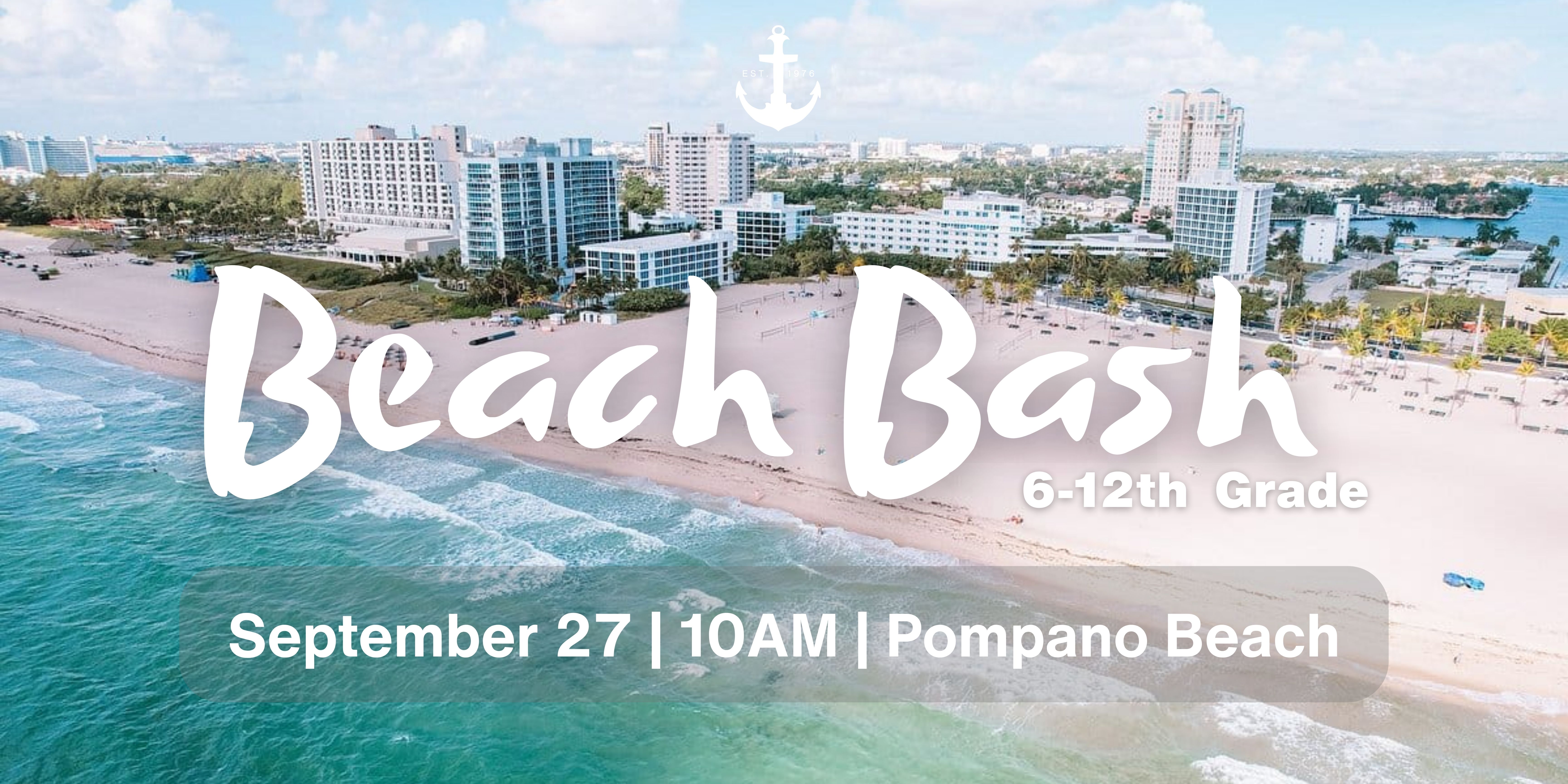 Grab a beach chair and invite somebody to the "Gangway Beach Bash" on Saturday, September 27th from 10:00am-2:00pm at Pompano Beach Pavilion #3, located at 310 N Pompano Beach Blvd, Pompano Beach, FL 33062. This event is for 6-12th students and their families. Public parking garage is located at 3460 NE 3rd St, Pompano Beach, FL 33062, just SW of 'our spot.' Metered street parking is also available.
